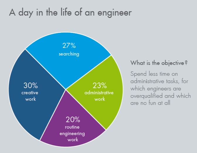 Meer tijd voor creativiteit en ontwerpen, minder tijd besteden aan routines Werken met het ontwerpsysteem (CAD/CAE) behoort tot de primaire dagelijkse werkzaamheden van engineers. Beheer van engineerings data door een PDM/PLM-systeem moet om die reden de werkzaamheden van de engineer zo ondersteunen, dat deze zich kan concentreren op zijn creatieve ontwerpactiviteiten. Om daar de focus op te houden is het van belang te worden ontlast van dagelijkse routines. PLM vormt bovendien de basis voor de samenwerking met collega's van de werkvoorbereiding, de productie en de service.