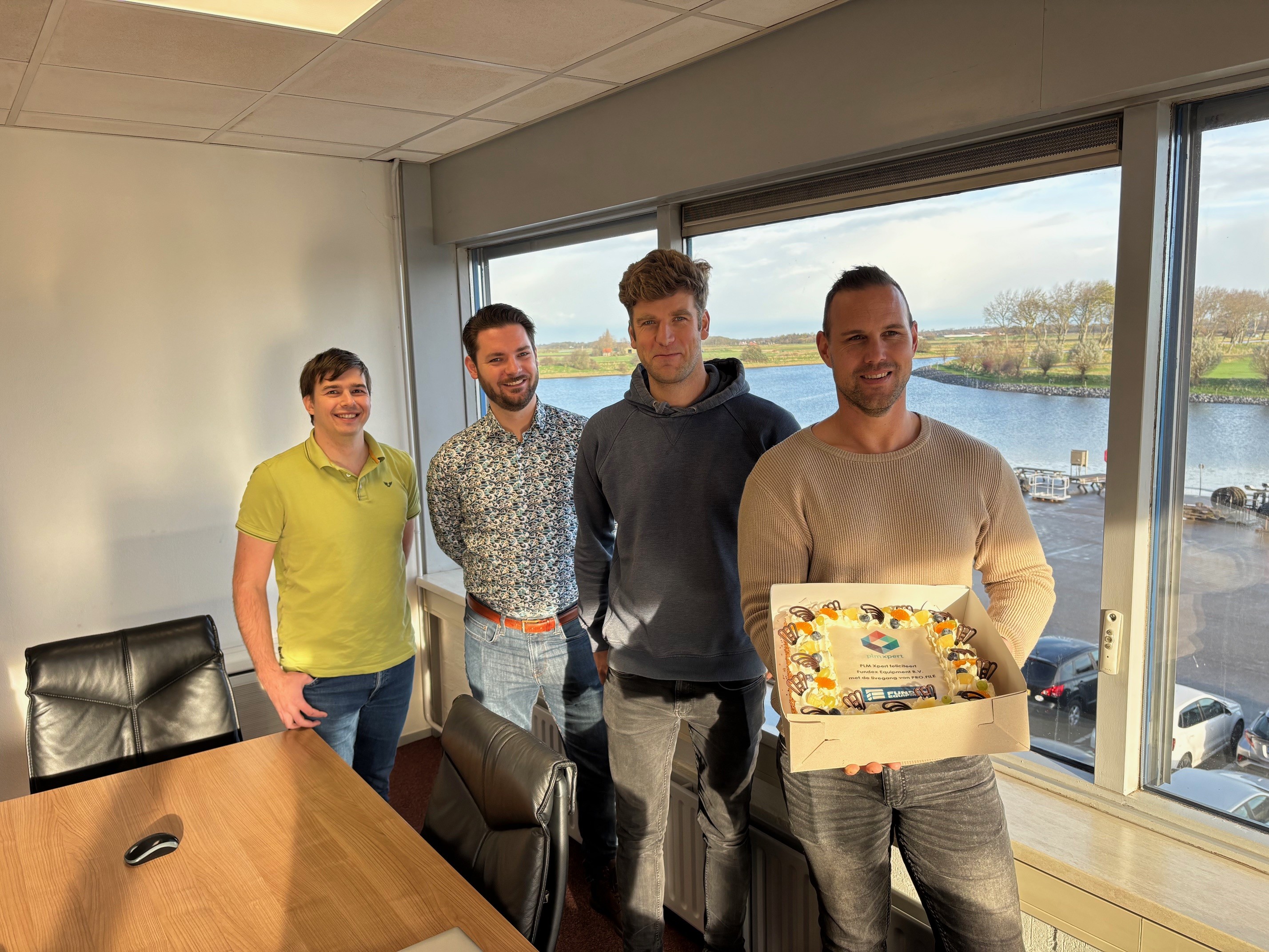 De taart en het zoet, dat hoort erbij! Op de foto het projectteam: